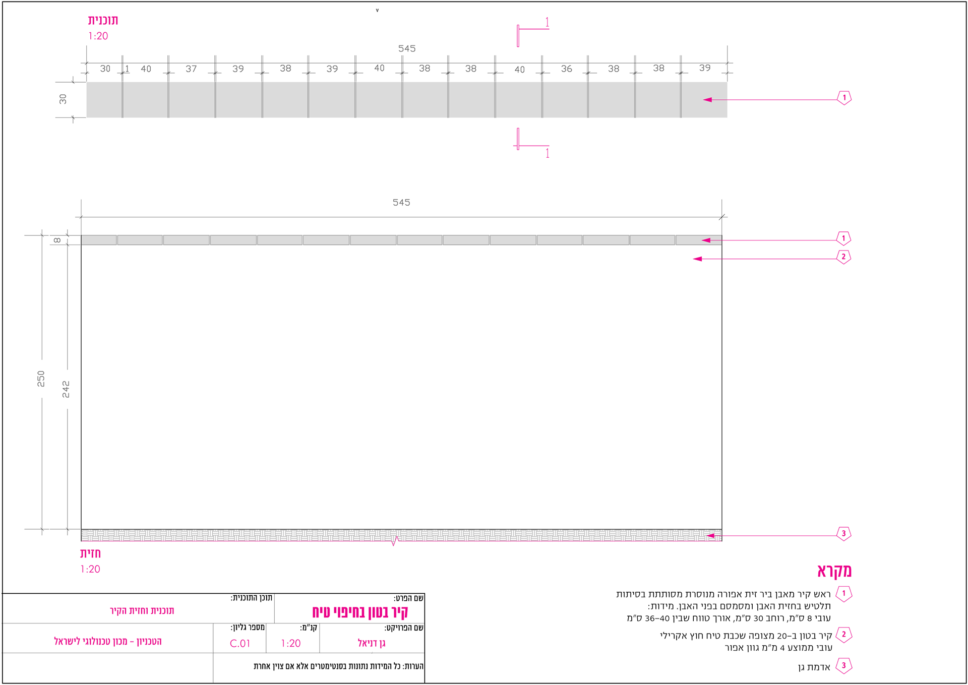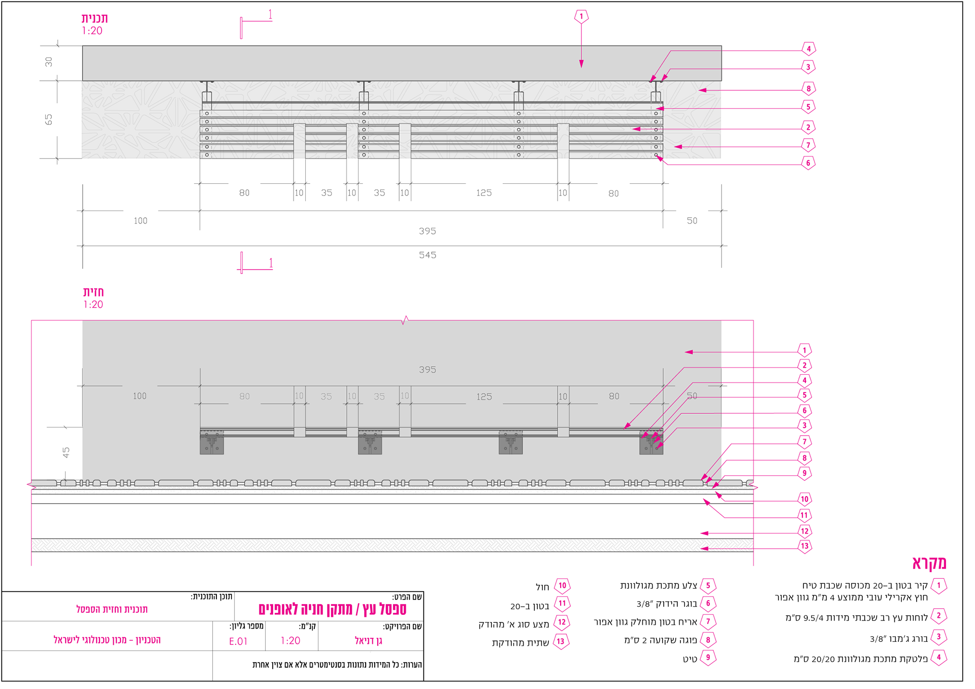 פרט שלט מתכת תוכנית וחזית